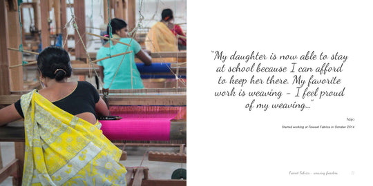 We want Freeset Fabrics to work against the injustice and exploitation faced by women in the majority world. While acknowledging that employment is not the only answer to the troubles of women in rural India, it can play a significant role in effecting positive change. As a customer, you can contribute to this transformative change, by purchasing the beautiful scarves made by the women of Freeset Fabrics.